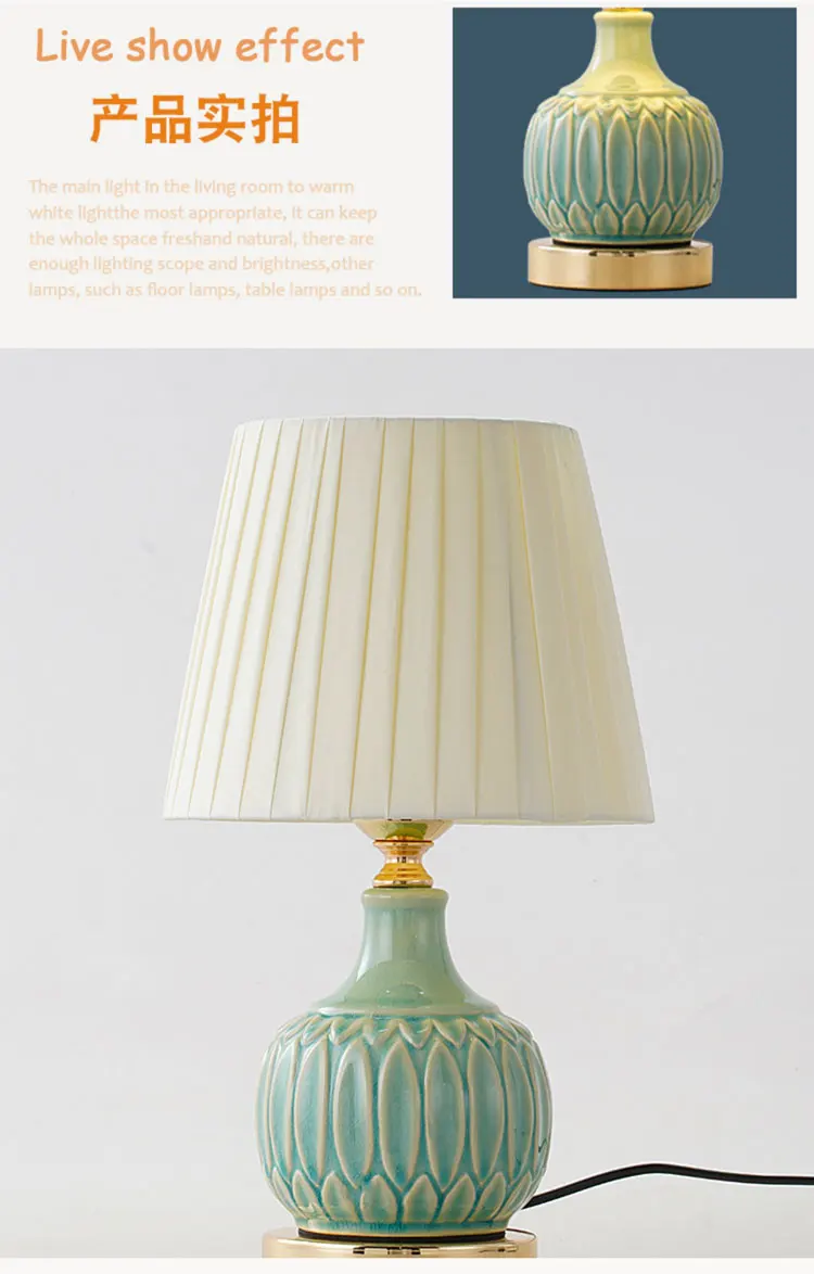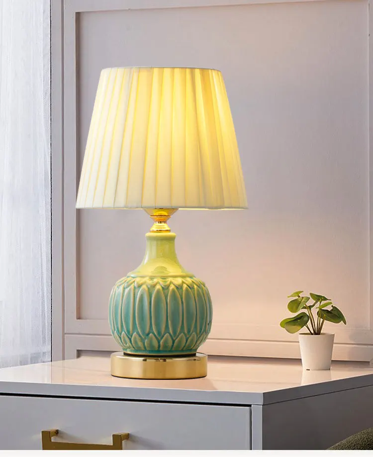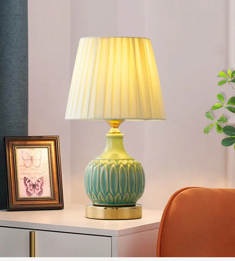 American Ceramic Desk Lamp European Living Room Study Bedroom Bedside Lamp Simple Modern Luxurious Warm Nordic Fabric Table Lamp